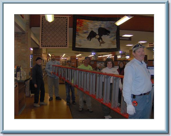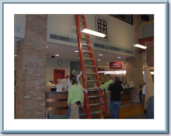 Preparing to hang quilts